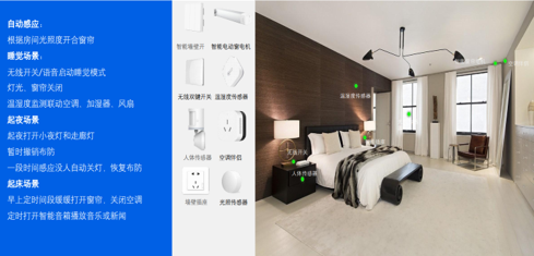 产品特点: 自动化与智能化:通过物联网技术将家居设备互联互通,实现自动化和智能化的居住体验。例如,设备可以自动响应环境变化,如人体传感器和光照传感器联动,人进房间灯光渐亮,离场后自动关灯关窗帘。 便捷的操作方式:支持多种控制方式,包括手机APP、语音控制和触摸屏控制等。 场景化体验:根据不同的生活场景自动调整家居设备的状态。例如,在客厅中可以通过语音控制调节电视机、音响系统以及灯光,打造出一个舒适的家庭影院。 安全与节能:具备高级的安全保障系统,包括智能门锁、监控摄像头和门窗传感器等,确保家庭安全。同时,通过智能控制家电的开关和使用,优化能源消耗,实现节能减排。例如,智能断路器可以实时监测线路负载,预测性报警电弧故障,短路响应速度比传统空开快0.2秒。 个性化定制:支持个性化定制,用户可以根据自己的需求和喜好,定制个性化的智能家居场景和自动化规则。